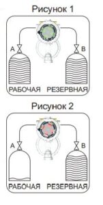 – Стрелка на ручке инвертора указывает, какой из двух баллонных групп подает газ: так называемая “рабочая” группа баллонов. Другая группа баллонов, следовательно, будет называться “резервная”