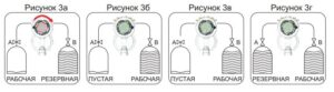 Отсоедините пустую группу баллонов А рис 3в Соедините полную группу баллонов и откроите вентиль и А рис. 3 г Показание индикатора на автоматическом инверторе: “рабочая” группа баллонов полная